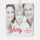Ornamento De Cerâmica Merry red festive retro font name year photo