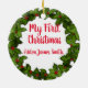 Meu Primeiro NatalTraga muito mais alegria de férias para sua árvore com um ornamento cerâmico personalizado. Adicione fotos de família, amigos e uma mensagem pessoal aos dois lados deste ornamento. Um fio de ouro torna fácil pendurar esta fantástica marca de sempre.