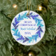 Ornamento De Cerâmica Meu Primeiro Natal como Tio Elegante Blue Wreath