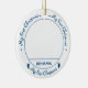 Meu Primeiro Natal! Decorre a árvore ou envie um presente especial com este adorável ornamento personalizado de fotos de bebês em um design azul e branco com pés e corações bonitos para bebês. Adicione suas fotos favoritas de bebês e personalize com nome e ano. O ornamento é de dois lados, você pode fazer fotos diferentes em cada lado. COPYRIGHT © 2020 Judy Burrows, Black Dog Art - Todos Os Direitos Reservados. Meu Primeiro Natal Simples Foto para Bebê Cachorro Cerâmica