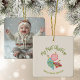 O primeiro enfeite personalizado de manutenção personalizado de um bebê neutro no Natal com foto no verso. Criado de Enfeites de natal brancos desenhados à mão. Arte original de Leslie Larson.