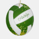 Esse adorno bonito de vôlei apresenta a imagem realista de um vôlei que tem painéis verdes e brancos e uma aspersão de minúsculas estrelas de brilho dourado, sobre as quais você pode personalizar o nome do jogador na frente e no ano comemorativo no verso - por katz_d_zynes