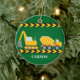 Legal e personalizada escavadora de construção e Enfeites de natal de betão para uma criança que adora veículos de construção amarelos em preto e amarelo. Um presente de veículo verde divertido para um menino que ama carros e caminhões. Personalize com o nome do seu filho sob a fita de precaução preto e amarelo.