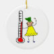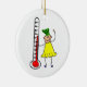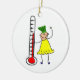 Ilustração lunática dos desenhos animados bonitos de uma menina feliz que guardara um termômetro gigante. Facilmente personalize e escolha sua própria cor do fundo ou adicione o texto. Imagem disponível em vários presentes e produtos.