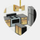 Imagem da mobília e dos dispositivos da cozinha. Inclui o refrigerador, o fogão e os armários. Direitos reservados de John Takai.