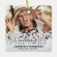 Enfeites de natal personalizado de tributo memorial com uma foto tesourada do seu ente querido, um design cardíaco moderno padrão de mármore, o ditado "na memória amorosa", seu nome e datas.