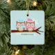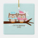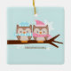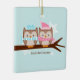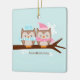 Enfeites de natal personalizáveis com um adorável casal de corujas em cores pastel suaves.