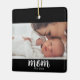 Ornamento De Cerâmica Mom Established Black White Script Photo
