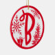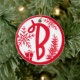 Ornamento De Cerâmica Monograma de Natal - Letra B Vermelho Branco