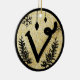 Ornamento De Cerâmica Monograma de Natal - Letra V Largura Dourada Preta