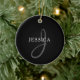 Ornamento De Cerâmica Monograma de Nome Elegante | Cinza e branco preto