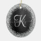 Ornamento De Cerâmica Monograma do Sparkle Preto com Glitter de Prata Pe