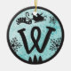 Ornamento De Cerâmica Monograma - Letra W Azul Preto - Brilho