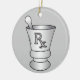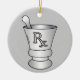 Ornamento Cerâmico de Mortar Pestle por Ilustração ArtMuvz. Chapéus de farmacêutico, enfermeiras bonitinhas em sacos, enfeites de enfermeira. Camiseta e presentes para o médico, médico, médico aposentado e muito mais. Para personalizar, clique em "personalizar este modelo" e edite os campos fornecidos para seu presente personalizado. Você pode adicionar seu nome ou adicionar texto. Personalize este ornamento farmacêutico para torná-lo exclusivamente seu ou para dar como presente personalizado