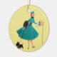 Ornamento De Cerâmica Mulher retro dos anos 50 com Natal do cão do