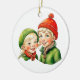 Bonito Enfeites de natal personalizado com um belo retro rapaz e elfos meninas. O verso pode ser personalizado com uma mensagem personalizada.