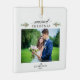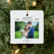 Este ornamento é um presente de Natal perfeito para o novo casal. Ele apresenta um design elegante e mínimo com fundo branco. Personalize com sua foto de casamento, nome e ano.