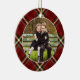 Personalize este Enfeites de natal festivo personalizado com uma foto de família favorita em cada lado, emoldurada por uma xadrez vermelha e verde.