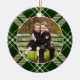 Personalize este Enfeites de natal festivo personalizado com uma foto de família favorita em cada lado, emoldurada por uma xadrez vermelha e verde.