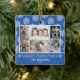 Snowflake Família de Padrões 6 Foto Colagem de Foto Ornamento Cerâmico de Natal. Design de Natal moderno com um padrão de floco de neve em azul. Adicionar 6 fotos, nome e ano.