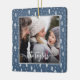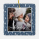 Tome suas memórias junto com este Enfeites de natal adorável. O design apresenta seu nome em uma fonte moderna de script com sua foto no fundo do padrão de pinheiros com esboços azuis. Este ornamento será um guardião do tesouro para sempre. O ornamento reverte para um fundo de pinheiros com esboços azuis com o ano.