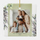 Esta Enfeites de natal mostra a cor verde-d'água mutada folhagem de inverno. Personalize este Enfeites de natal elegante com sua foto de família.