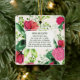 Enfeites de natal de bênção irlandês apresenta um belo design floral de aquarela com flores e folhas de trevo vermelhas, rosa e verdes. Apresenta uma inspiradora oração irlandesa, "Que Deus vos dê, Por cada lágrima, um sorriso, Por cada cuidado, uma promessa, E uma bênção em cada julgamento, Por cada suspiro, uma canção doce, E uma resposta para cada oração." Personalizado o verso com um nome e uma data ou os detalhes de sua escolha.