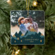 Este Enfeites de natal fotográfico único apresenta um moderno design de serra na parte inferior do ornamento, incluindo elementos falsos de folha de ouro. A frente e o verso contêm o mesmo design. Perfeito por exibir uma foto da família para comemorar o ano!