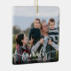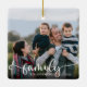 Este belo ornamento da árvore de Natal mostra a palavra "família" é uma caligrafia moderna sobre a foto. Personalize este ornamento com seu nome de família e ano. Fotografia © Storytree Studios, Stanford, CA