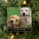 Ornamento De Cerâmica Natal de Férias com Script de Foto Pet Dourado do