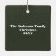 Este ornamento está pronto para ser personalizado com sua própria foto em forma quadrada. Sua mensagem personalizada aparece em letras brancas em negrito contra uma camada verde-azeitona escura na parte inferior da imagem. Há também um ponto para adicionar texto no lado oposto.