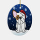 Enfeites de natal bonitos do buldogue francês, tirados em desenhos animados do kawaii! Esta raça adorável do cão está vestindo um chapéu vermelho do papai noel, e os flocos de neve estão caindo toda em torno dele. Absolutamente querido, perfeito para a árvore do Xmas do amante do cão! Este Frenchie é branco com um remendo e uma orelha marrons do olho.