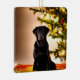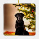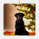 Este Enfeites de natal apresenta um bonito labrador negro sentado debaixo da árvore de Natal.