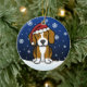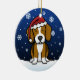 Enfeites de natal bonitos do lebreiro, tirados em desenhos animados do kawaii! Esta raça adorável do cão está vestindo um chapéu vermelho do papai noel, e os flocos de neve estão caindo toda em torno dele. Absolutamente adorável, perfeito para a árvore do Xmas do amante do cão!