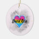 Personalize este adorno de cerâmica de orgulho pansexual divertido com seu nome em letras negras para um sentimento legal! Criado especificamente para a comunidade LGBTQ, este design colorido apresenta uma bandeira cardíaca pansexual rosa, amarela e azul, feita com aquarela e tinta em um fundo cor-de-rosa.
