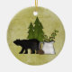 Urso Silhueta de Montanha Russo Enfeites de natal com Fundo Verde. Personalize com um nome e ano. *