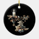 Enfeites de natal para comemorar em estilo gótico. metálico - ornamentos de aço-ouro sobre fundo escuro (preto). Os ramos da imagem são pulverizados com uma tinta metálica de aço, dando-lhes um aspecto moderno e elegante. Eles estão organizados em estilo minimalista, focando linhas e ângulos limpos para criar uma estrutura de inspiração gótica. No meio da decoração, há uma vela, colocada num porta-velas de aço. O porta-velas possui elementos design góticos, como arcos pontiagudos e trincas intrincadas. A vela adiciona um brilho quente, convidando para a decoração.// Esta design cria uma decoração de Natal que é simultaneamente luxuosa e suja, tradicional e moderna, quente e legal. Isto é uma espécie de decoração de férias, perfeita para alguém à procura de algo um pouco diferente neste Natal.
