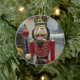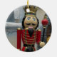 Este Enfeites de natal colorido de dois lados apresenta uma guarda Nutcracker com uma coroa dourada brilhante, à frente de um grotto.