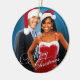 Este Enfeites de natal redondo divertido apresenta o Presidente Barack e a Primeira-Dama Michelle Obama como o Sr. Sra. Papai Noel. Faz uma lembrança memorável. Posters de calendário, placas de saudação, posters e ímãs também disponíveis. "Barack e Michelle Papai noel" original por Cheryl Daniels © 2013.