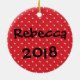 Celebre a temporada de férias com este adorável ornamento cerâmico de Santa Cláusula. Apresenta um estilo cartoon Santa Clause segurando uma bengala branca e verde. O fundo na frente e atrás é uma bolinhas vermelha e branca. Personalizado com o nome ou a família do seu filho e inclua o ano ou a data especial.