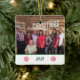 Personalize este Enfeites de natal elegante com sua própria foto de família e o ano colocado sobre uma faixa branca com flocos de neve vermelhos divertidos e tipografia verde de Natal. Comece uma nova tradição para criar o ornamento pessoal da sua família a cada Natal. Adequado para uma foto horizontal 5x7. Um presente maravilhoso para dar aos pais, avós, ou para guardar por si mesmo. Também disponível em outros estilos.