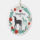Ornamento de Arte Folclórica de Natal personalizado de Deer e Holiday Wreath Baby. Possui uma pomba e um rosto rodeado por uma bonito poinsettia de Natal, sagrada e pinheira. ~