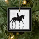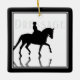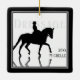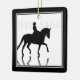 Cavalo de Dressage Silhouette com Reflexão em Ornamento Cerâmico de Árvore de Natal de Férias Pretas e Brancas - Personalize com um ano, nome ou qualquer outro texto que você queira adicionar.