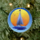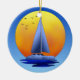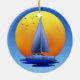 Para capitães para baixo às mãos de plataforma, ao gráfico da navigação do catamarã do vetor com por do sol e às gaivotas.