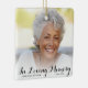 Um ornamento personalizado da árvore de Natal memorial de cerâmica quadrada apresenta "In Loving Memory", o nome do seu amado e os anos de nascimento e morte sobre a sua foto.