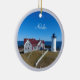 Nobska Lighthouse Cape Cod, Cerâmica Ornament. Esta design apresenta a bela Nobska Light em Falmouth, Massachusetts, fotografado com vista para o Atlântico. Personalize o script com seu nome de família ou a data.