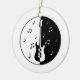 Design preto e branco de uma guitarra elétrica com notas de música. Use o botão personalizar para personalizar.