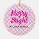Ornamento De Cerâmica Nome da família Bright, Feliz de Natal rosa