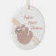 Este Enfeites de natal bonito é decorado com uma bela e sorridente preguiça rosa-reluzente rodeada por estrelas douradas.