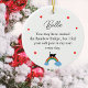 Este simples ornamento apresenta um nome de gato personalizado, uma mensagem e um arco-íris.